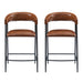Counter Stools (Set of 2), Upholstered Counter Stools With Iron Frame, Backrest, Footrest, Arm Counter Stools For Home Bar, Kitchen Counter - Brown