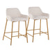 Daniella - Contemporary / Glam Fixed Height Counter Stool (Set of 2) - Gold / Cream