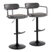 Demi - Contemporary Adjustable Height Barstool With Swivel With Rounded T Footrest (Set of 2) - Black / Gray