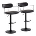 Demi - Contemporary Adjustable Height Barstool With Swivel With Rounded T Footrest (Set of 2) - Black / Chrome / Black