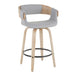 - Quality Materials: Constructed with white washed wood swivel legs and a durable chrome footrest, this stool combines functionality with style. The cushioned seat is upholstered in stylish woven fabric for added comfort.