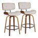 Lombardi - Mid-Century Modern Fixed Height Counter Stool With Swivel With Round Footrest (Set of 2) - Walnut / Cream