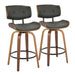 Lombardi - Mid-Century Modern Fixed Height Counter Stool With Swivel With Round Footrest (Set of 2) - Walnut / Gray