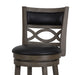 The New Classic Furniture Manchester Pub Height Swivel Bar Stool is a functional and durable seating solution designed for comfort and style. Crafted from quality Rubberwood solids and manufactured wood, ensuring long-lasting strength. Featuring a seat height of 29”, the stool's legs are reinforced by a circular footrest, providing added stability and functionality. With a 360-degree swivel, this barstool effortlessly rotates for convenient use at kitchen islands or bars. The full foam seat cushions and backrests, upholstered in easy-care light gray 100% polyester fabric, offer a plush and cozy seating experience. The distinctive interlocking wave wood back and thickly welted upholstery add a touch of sophistication to the overall design. Easy assembly is a snap with the included instructions. Elevate your bar, counter, or kitchen island with the Manchester Bar Stool, where durability meets distinctive style.