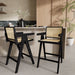 Modern Minimalist Bar Stool With Cane Seat - Black / Natural