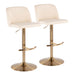 Toriano - Contemporary Adjustable Barstool With Swivel With Rounded T Footrest (Set of 2) - Cream / Gold