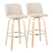 Toriano - Contemporary Fixed Height Barstool With Swivel & Round Footrest (Set of 2) - Natural / Cream