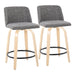 Toriano - Contemporary Fixed Height Counter Stool With Swivel, Round Footrest (Set of 2) - Gray / Black / Natural