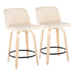 Toriano - Contemporary Fixed Height Counter Stool With Swivel With Round Footrest (Set of 2) - Cream / Natural