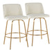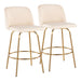 Toriano - Contemporary Fixed Height Counter Stool Swivel With Round Footrest (Set of 2) - Cream / Gold