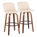 Toriano - Mid-Century Modern Fixed Height Barstool / Swivel And Round Footrest (Set of 2) - Walnut / Cream