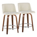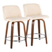 Toriano - Mid-Century Modern Fixed Height Counter Stool Swivel With Round Footrest (Set of 2) - Walnut / Cream