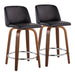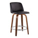 Toriano - Mid-Century Modern Fixed Height Counter Stool With Swivel And Round Footrest (Set of 2) - Walnut / Black