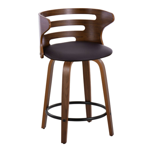 Lumi SourceModern Design: The Cecina Fixed-Height Counter Stool by LumiSource features a contemporary design with a curved wood frame and a sleek swivel...