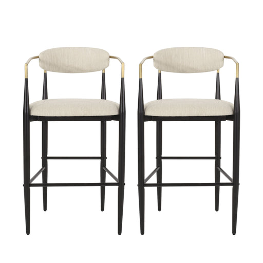 8th StreetComfortable Seating: The set of 2 barstools features a 360-degree pivoting upholstered seat in beige microfiber, complemented by a footrest f...