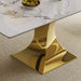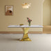 Modern Rectangular Dining Table For 6 - 8, Plated Hourglass Base, Sintered Stone Top - Gold / White