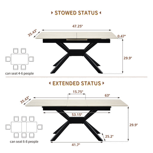 Original price $1,611.00Original price $1,611.00 - Original price $1,611.00Original price $1,611.00Current price $1,440.00$1,440.00 - $1,440.00Current price $1,440.00Rectangular Extendable Dining Table With Geometric X Frame, Kitchen Table For Dining Room - Beige