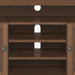 - Features two (2) side doors open to storage areas with two adjustable shelves and a central area with two (2) adjustable shelves and a top open shelf for your media devices.
