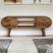- Features: media unit, solid mango wood, handcrafted, 4 drawers, 2 shelves, living room furniture, curved, rounded edges