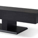 - Modern Design: This sleek, black rectangular TV stand features a minimalist design with a sturdy wooden top and a double pedestal base, offering a balanced and contemporary silhouette.