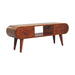 - Circular TV Unit - Our solid timber media unit is expertly constructed from 100% solid mango wood in a lovely finish. This modern circular design offers clean, curved edges and features 2 small drawers that come with a shiny knob, and a open slot to place any books, photo frames, ornaments, as well as 4 Nordic style legs.
