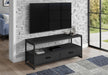 - Accommodates TVs: 48-inch TV stand with a wood-look finish and metal frame supports most TVs when centered on the top shelf.