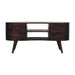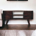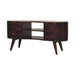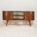 - Wave Entertainment Unit - This solid wood media unit has been constructed from 100% solid mango wood in a light walnut finish and offers a unique shaped design with rounded edges. It features four drawers that have shiny knobs and Nordic-style legs. A nice addition to the living room.