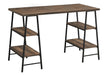 - Ample Storage: Equipped with four fixed, open shelves, this desk provides ample storage options for small workspaces. The shelves come in two different sizes, finished with a smooth laminate.