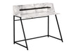 • Stylish Design: The computer desk features a marble-look finish with a small hutch and a long shelf in a contrasting finish, adding a modern touch to your home office.