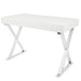 - Stylish Support: The desk is supported by chrome-finished X-shaped legs, which not only provide stability but also add a contemporary and stylish appeal to your interior decor.