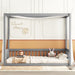Twin Size Canopy Frame Floor Bed With Fence, Guardrails - Gray