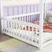 Full Size Canopy Frame Floor Bed With Fence, Guardrails - White
