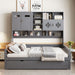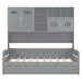 Full Size Wooden Daybed With Twin Size Trundle, And All In One Cabinet And Shelf - Gray