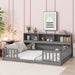 Full Floor Bed With Side Bookcase, Shelves, Guardrails - Gray