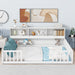 Full Floor Bed With Side Bookcase, Shelves, Guardrails - White
