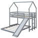 Twin Over Full House Bunk Bed With Slide And Built In Ladder, Full Length Guardrail - Gray