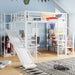 Full Size Loft Bed With Built In Desk, Open Wardrobe, Basketball Hoop, Slide And Staircase - White