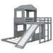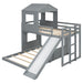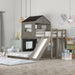 Twin Over Full Loft Bunk Bed With Playhouse, Farmhouse, Ladder, Slide And Guardrails - Antique Gray