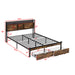 Modern Metal Platform Bed Frame With Wooden Headboard, USB Charging Station, Storage Drawers