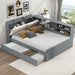 Full Size Platform Bed With Trundle, Shelves, And Storage Headboard - Gray