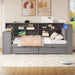 Twin Size Platform Bed With Upholstered Headboard, Storage Shelves, Drawers, Charging Station, LED Lighting, Built In Desk - Gray