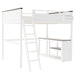 Queen Size Loft Bed With Desk, Open Shelf, Storage Box And USB Charging Station - White