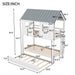 Twin Size House Bunk Bed With Trundle, Roof And Windows - White / Gray