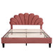 Queen Size Upholstered Platform Bed With Flower Pattern Headboard - Bean Paste Red