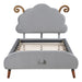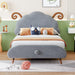 Twin Size Upholstered Platform Bed With Sheep Shaped Headboard - Gray
