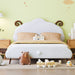 Full Size Upholstered Platform Bed With Sheep Shaped Headboard - White