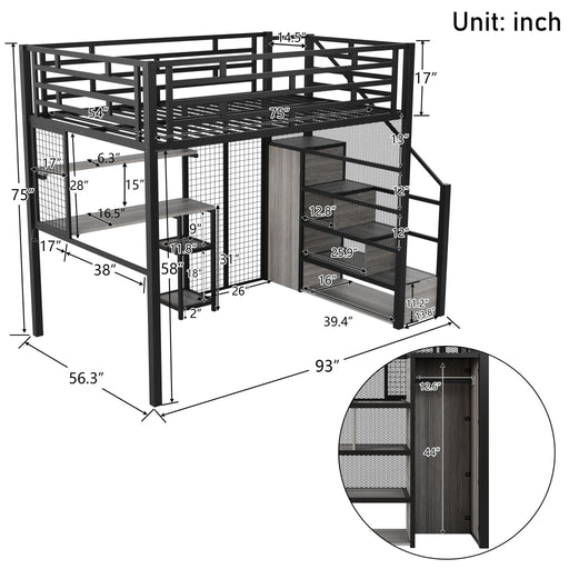 Original price $848.00Original price $848.00 - Original price $848.00Original price $848.00Current price $760.00$760.00 - $760.00Current price $760.00Metal Loft Bed With Wardrobe, Desk, Storage Shelves
