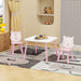 Table And Chair Set, 3 Piece Wooden Toddler Desk With Animal Backrest - Pink / White