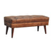 - Harbour Bench - Inject character into your living space with this modern green bench. The legs are constructed from 100% solid mango wood in a chestnut finish and the seat is upholstered in olive green buffalo leather with a deep button design, this piece will offer relaxation, making it both comfortable and beautiful in the home.
