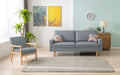 - The classic Bahamas Sofa with chair are the perfect additions to your living room dcor. Minimalistic design of the Sofa with clean-cut lines of the legs and square armrests. The quality linen fabric and solid wood legs offers lasting durability and comfort. Featuring a well cushioned back and seating along with the two accent pillows not only add a pop of color to your living space, but also add extra comfort. The mid-century modern chair is supported by solid wood frame and arms. Enjoy your favorite TV show, entertain your guest, all while complementing your space! Assembly is easy with the simple and clear instructions included!